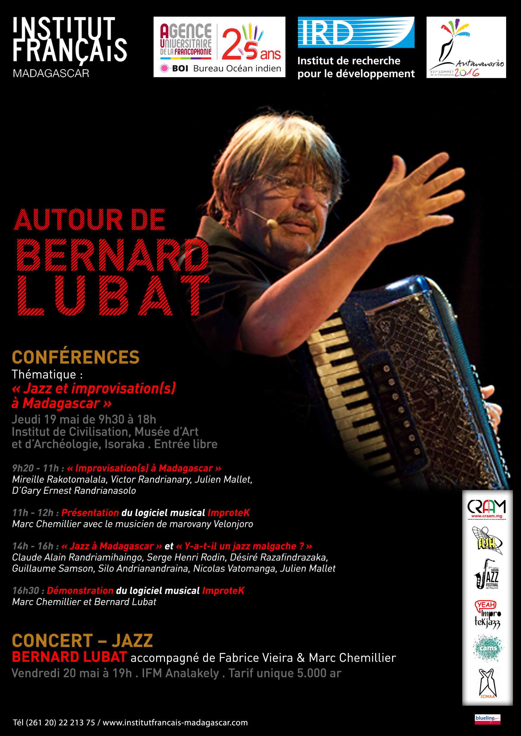 - 19 mai 2016, 9h30-18h : conférences « Jazz et improvisation(s) à Madagascar », Institut de Civilisation,